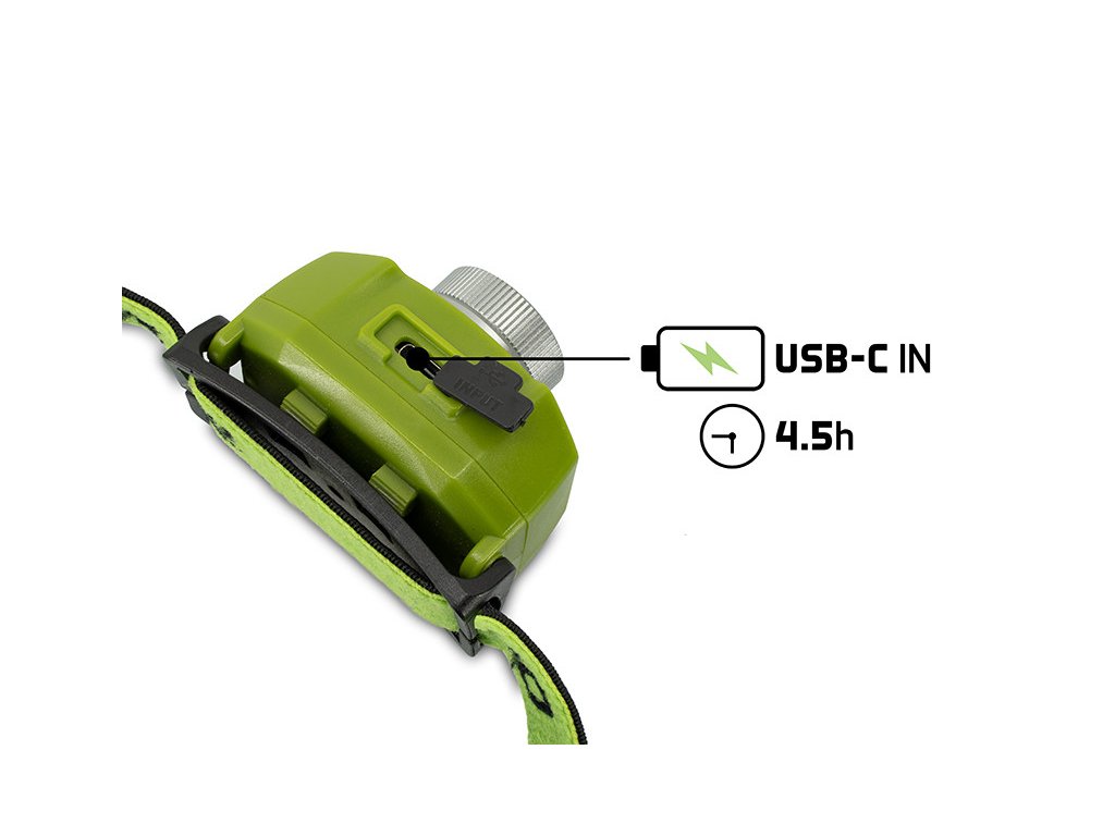 LED diódy ponúkajú možnosť bieleho alebo zeleného svetla. Pri prvom kliknutí spínacieho tlačidla sa čelovka rozsvieti bielym svetlom na 100%, pričom jej výdrž v tomto režime bude 5 hodín. Druhým kliknutím bude biele svetlo svietiť na 60% s 9 hodinovou výdržou. Pri treťom kliknutí sa biele svetlo stlmí na 30% a vydrží svietiť až neuveriteľných 20 hodín. Dlhším podržaním rovnakého tlačidla sa rozsvietia bočné zelené diódy s výdržou 20 hodín. Opätovným krátky stlačením sa aktivuje blikanie zelených diód. Práve zelené svetlo nepriťahuje otravný hmyz a rozhodne ho oceníte aj počas zdolávania rýb, ktoré sa plašia omnoho menej ako pri osvietení bielym svetlom.