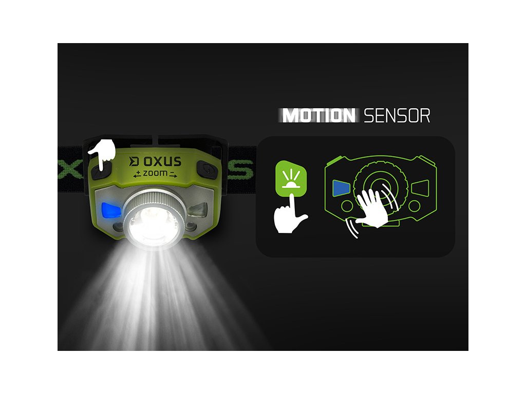 Čelovka disponuje výkonom 5 W a svietivosťou až 300 lm. Vďaka týmto parametrom a možnosti fokusovania svetelného lúča tak nebude problém dostatočne osvetliť vaše bezprostredné okolie, ale aj vzdialené ciele. OXUS ZOOM je vybavená pohybovým senzorom, čím ju poľahky zapnete a vypnete mávnutím ruky.