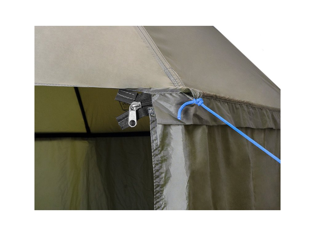 Štyri ukotvovacie laná poslúžia výborne pri silnejšom vetre. Svetlo modrá farba lán bola navrhnutá zámerne tak, aby nedochádzalo k zakopnutiu pri zníženej viditeľnosti. Švy dáždnika sú za horúca kompletne podlepené vodeodolnou páskou pre zabezpečenie 100% nepremokavosti aj pri veľkom daždi. K dispozícii je bočná trojštvrťová predĺžená stena, ktorá sa upevňuje pomocou kvalitného zipsu okolo kupole. Spodná časť bočnej steny je osadená úchytmi pre pripevnenie k zemi pomocou zaisťovacích kolíkov (10 kolíkov je súčasťou balenia). Zipsy sú plne prekryté kusom látky pre zabezpečenie ich nepremokavosti. Dáždnik disponuje kĺbom na nastavenie sklonu kupoly, vďaka čomu sa viete prispôsobiť slnečným lúčom ale aj vetru. Výšku dáždnika si prispôsobíte podľa potreby, čo zároveň uľahčí jeho upevnenie aj v členitejšom teréne. Delphin MONZUN je exkluzívnym dáždnikom na každý deň!