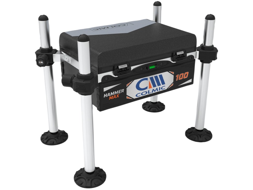 Konštrukcia v tvare X zaručuje výnimočnú pevnosť s optimalizovaným systémom spojenia medzi rámom a nohami, čo zvyšuje pevnosť a zjednodušuje montáž. Pod sedadlom sa nachádza veľký a ľahko prístupný priestor, ktorý je ideálny na uloženie malých dielov, príslušenstva alebo náradia, ktoré máte poruke počas rybolovu. Nové upevňovacie gombíky na nohy boli prepracované: teraz sú robustnejšie, spoľahlivejšie a prispôsobiteľnejšie a poskytujú bezpečnejší úchop a upravenejší vzhľad. Model 100 je základná verzia, ktorá je ideálna, ak hľadáte najmenšiu možnú veľkosť v kombinácii s absolútnou praktickosťou. Hammer Max 100 sa vďaka polstrovanému ramennému popruhu ľahko prenáša a je plne kompatibilný so všetkým príslušenstvom z katalógu Colmic, čo umožňuje vysoký stupeň prispôsobenia podľa vašej preferovanej techniky a štýlu rybolovu.