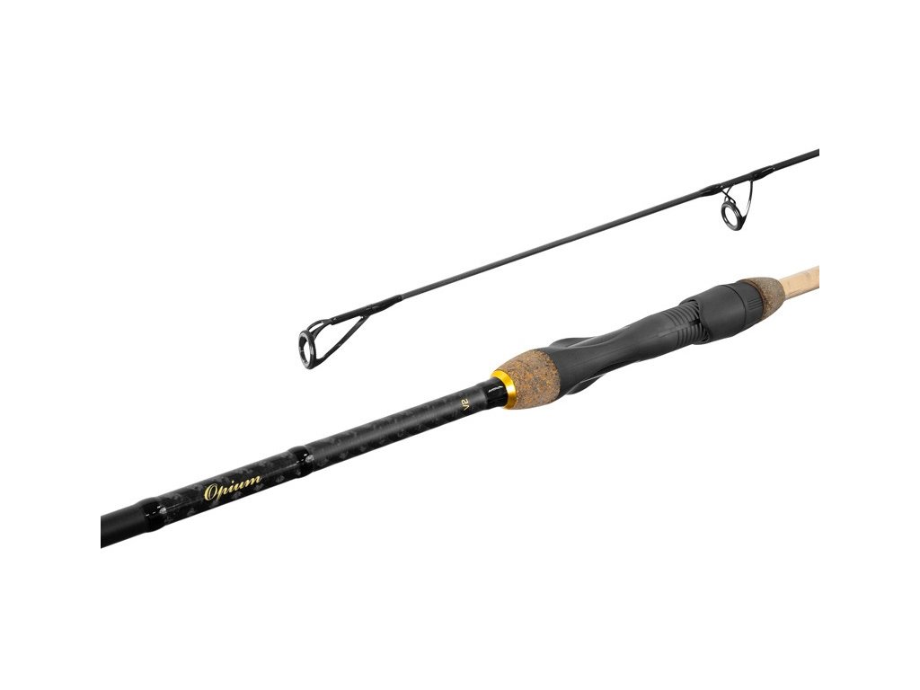 Opäť sme stavili na overený 30T karbónový blank, ktorého parabolická akcia pomáha pri súboji s trofejnými rybami, no napriek týmto silovým rezervám nám dovolí aj užiť si boj aj s menšími kúskami. Vrhacia záťaž 3lbs je univerzálna a v kombinácii s 30T karbónom sme dosiahli výnimočnú nahadzovaciu aj zdolávaciu akciu. Využili sme luxusné a ergonomické FUJI sedlo doplnené RUBBER CORKovými časťami rukoväte, kvalitné očká SEAGUIDE, tento krát s 50mm navádzacím očkom (pri modeloch 360cm a 390cm) a SiC výplňami či ručne pletený vzor na karbónovej páske nad rukoväťou. Spojka je navyše zosilnená kovovým prstencom, ktorý zaručuje výbornú pevnosť celého spojenia. V druhej verzii kaprových prútov OPIUM sme opäť použili obľúbený tenučký ThinCORK pre milovníkov tradičného štýlu. Tento materiál je zdvojený, preto nemusíte mať obavy o jeho odolnosť. Rukoväť je doplnená o bronzové metalické prvky a je ukončená RUBBER CORKom.