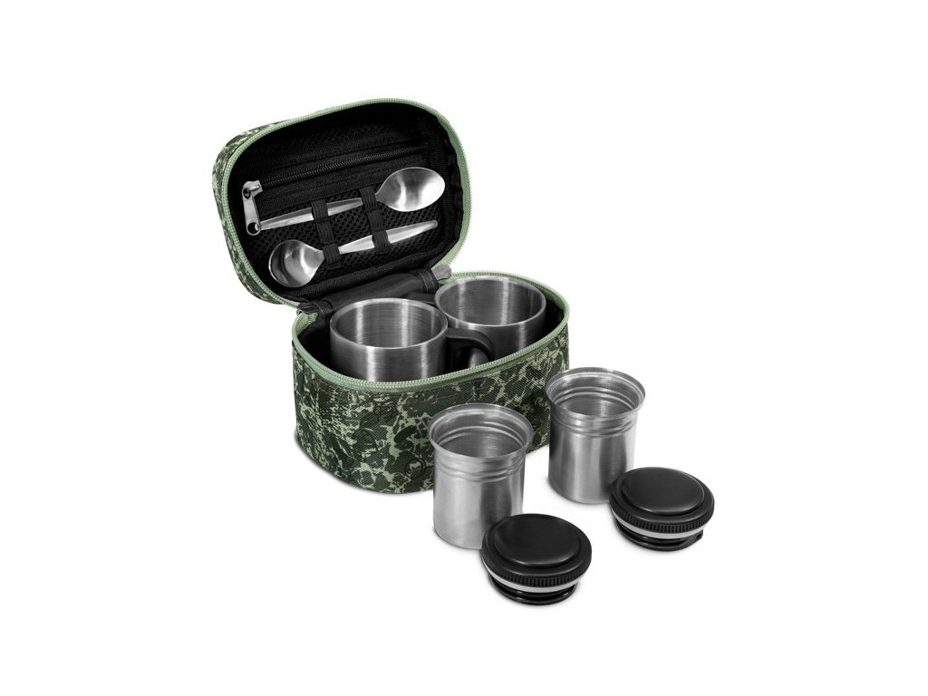 Rozmerom malý, obsahom veľký - taký je Delphin COTEA. Produkt s malými transportnými rozmermi, vďaka čomu nezaberie vo výbave takmer žiadne miesto. Napriek tomu ukrýva sadu, ktorá poteší každého kto si pri vode rád vychutná dobrú kávu alebo teplý čaj. COTEA obsahuje dva kvalitné nerezové hrnčeky, dve čajové lyžičky a taktiež dve uzatvárateľné nerezové nádobky, ktoré poslúžia napríklad na cukor a kávu. Samotná taštička disponuje malým sieťovaným vreckom, ktoré bez problémov pojme dostatočnú zásobu čajových vrecúšok. Navyše je opatrená kvalitnými zipsami, pričom ten vonkajší je vybavený praktickým ťaháčikom s logom firmy Delphin. COTEA je dizajnované v jedinečnej C2G kamufláži s efektným piktogramom definujúcim využitie tohto zaujímavého produktu.