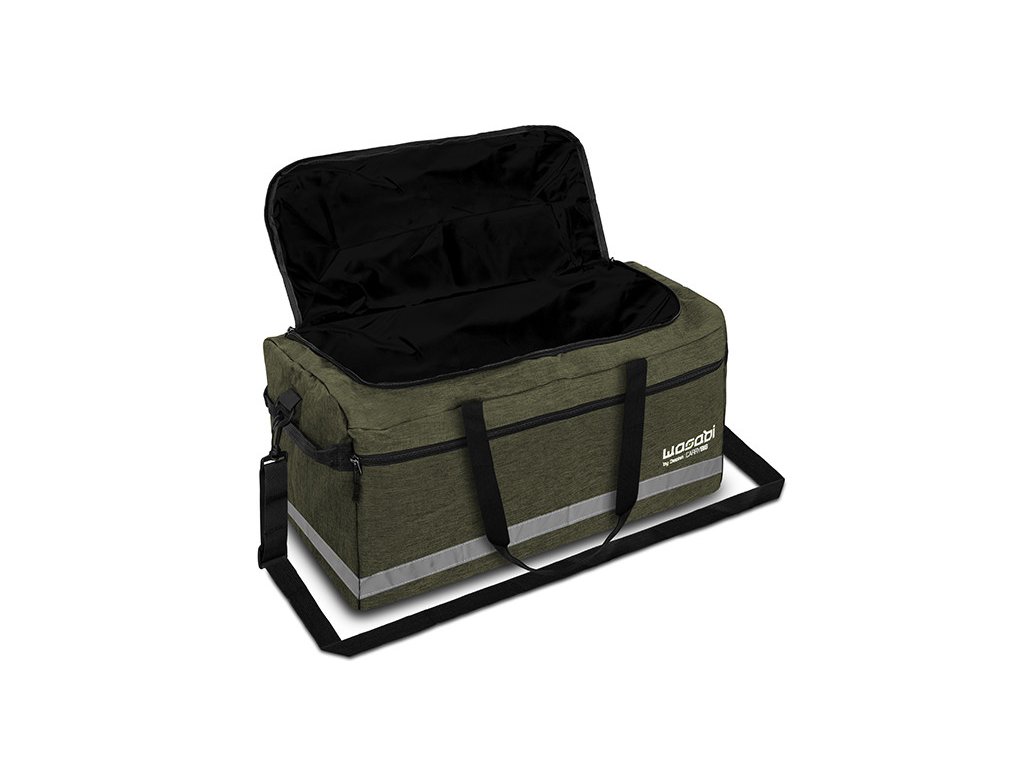 Pre pohodlné nosenie je taška vybavená odnímateľným, dĺžkovo nastaviteľným popruhom na rameno a dvomi popruhmi, slúžiacimi na prenášanie v ruke. Všetky popruhy sú dôkladne prešité, čo zaručuje, že taška WASABI CarryBig unesie aj väčšiu hmotnosť bez nechceného poškodenia. Na spodnej časti sa po celom obvode nachádza reflexný pás, prispievajúci k bezpečnosti počas nosenia, ale aj k jednoduchšej identifikácií tašky počas horšej viditeľnosti, napríklad v noci.