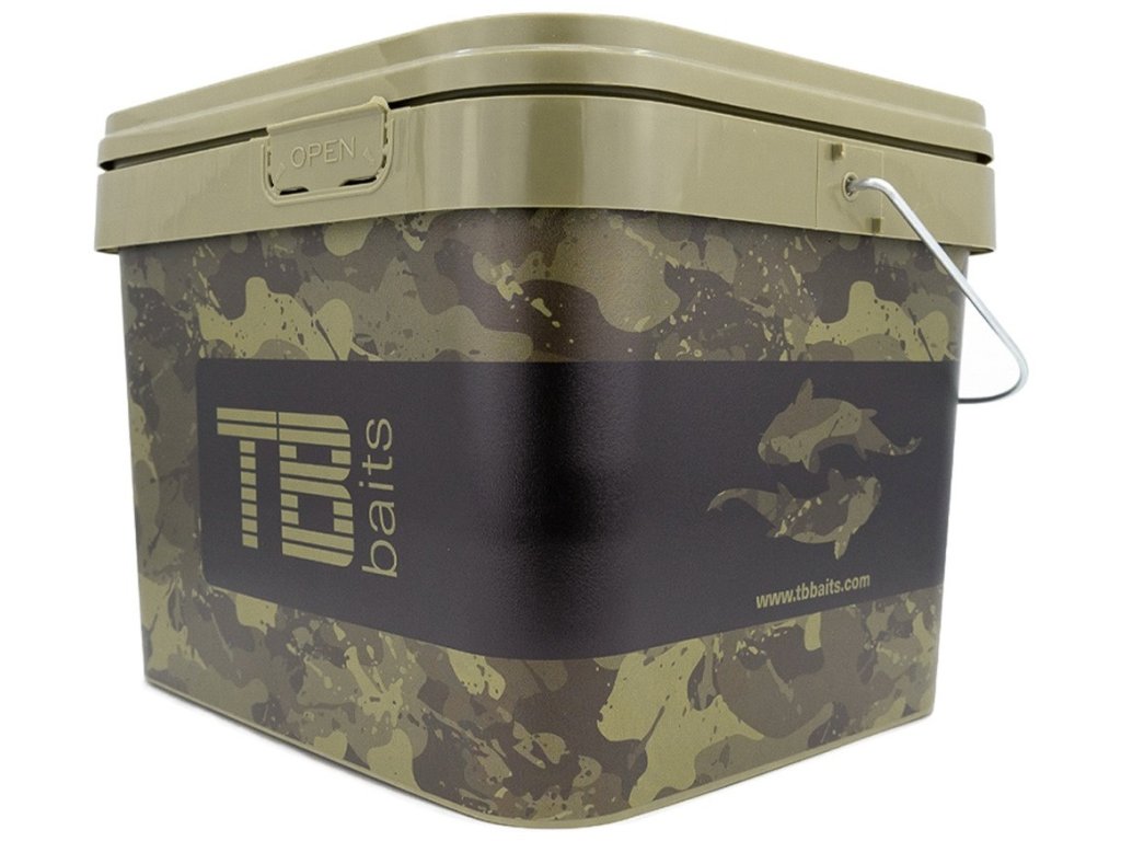 Kvalitné vedro z tvrdeného plastu s odolnou kovovou rukoväťou v dizajne Camo Carps od značky TB Baits. Tieto vedierka môžete použiť na transport ľubovoľných návnad a nástrah. Vedierko disponuje znovu uzatvárateľným vekom, ktoré je tiež potlačené Camo designom.